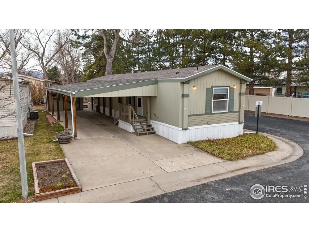 Motivated Seller says, "Must Sell!" This is a 55 and older community with a lot rent of $1300/month. This stunning manufactured home has 2 bedrooms, 2 full bathrooms with grab bars, and offers the look and feel of a stick-built house with vaulted ceilings and drywall throughout. Pride of ownership shows throughout the home! Central heating and air conditioning are programmed with a setback thermostat, allowing constant comfort. The split bedroom layout is great for guests to have their own space and a private bathroom. Bathrooms have been updated with new quartz vanities and LVP flooring. There is an abundant amount of storage space with dual closets in the primary bedroom, a linen closet in the primary bathroom, plenty of kitchen cabinets, and an outdoor storage shed. Enjoy your morning coffee or evening tea while sitting on the deck soaking up the Colorado sunshine. Newer roof and furnace as of 2021. Aspen Ridge Manufactured Home Park is a quiet, pet-friendly, gated, 55+ community with a neighborhood park and pavilion. Located just a short drive to downtown Loveland, restaurants, Chilson Rec Center, shopping, and Boyd Lake. The monthly lot rent is $1300. Lot rent includes non-potable irrigation water and snow removal from the streets throughout the park. Buyers must be approved by Aspen Ridge park management. Apply online at www.aspenridgemhc.com. There is a non-refundable application fee of $40. The application is good for 90 days.
