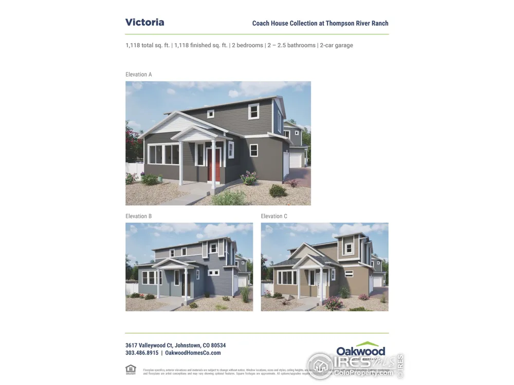 Smart space, elevated style, meet the Victoria. Designed with first-time homebuyers in mind, this 2-bedroom, up to 2.5-bathroom home offers 1,118 square feet of well-planned living that blends everyday ease with modern design. On the main level, an open layout connects the kitchen, dining, and great room which is perfect for hosting or simply unwinding. The kitchen features energy-efficient appliances, soft-close drawers, and plenty of storage to keep life organized. Upstairs, two private bedroom suites flank a conveniently located laundry room. The generous primary suite includes a spa-style shower and roomy walk-in closet, while the second suite features its own walk-in and full bath with soaking tub ideal for guests, roommates, or a home office setup. A 2-car garage adds space for storage or gear, and a cozy porch offers the perfect spot to enjoy those sunny Colorado days.