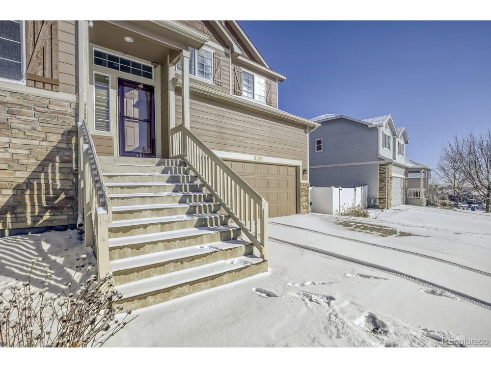 Welcome to this three-bedroom, three-bathroom home located in Clearview! This property is situated on a spacious corner lot, and features solar panels owned by the property, no metro taxes, and a low homeowners' association fee. Upon entering, you will notice the inviting living environment that is move-in ready. Enjoy the stunning mountain views, the open concept floor plan, vaulted ceilings, hardwood floors, and ample amounts of natural light. The large kitchen includes plenty of cabinetry for any storage needs you may have, spacious countertops, a breakfast bar, and a dining area. There are several living spaces, including a sunken family room that's perfect for a media setup. Enjoy the easy access to anywhere, great for hosting gatherings with friends and family. Head upstairs, where you will find the owner's suite. This space features plush carpet flooring, a ceiling fan, plenty of space for many different furniture layouts, a spa-like five-piece master bath, a walk-in closet, and a deep six-foot soaking tub. Two additional bedrooms and a bathroom complete the upper level and offer plenty of space. Outside, you will be greeted by a fully fenced, beautiful backyard, ideal for kids and pets. There is even a three-car tandem garage with plenty of space for your vehicles and gear. Enjoy the prime location offering easy access to just about anywhere, including I-25. Plenty of shopping, dining, and entertainment options are also nearby and include Bella Ridge Golf Club, Buc-ee's, The Promenade Shops at Centerra, Woods Market, and more! Don't miss this great opportunity!