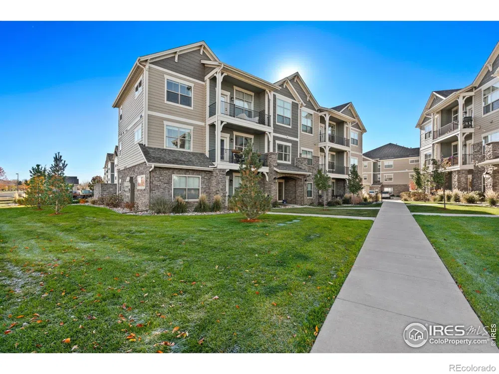 Welcome to 4672 Hans Peak Drive, Unit 304. This beautifully designed third-floor condo offers 1,072 square feet with 2 bedrooms and 2 bathrooms. Enjoy vaulted ceilings and private balcony. Located in The Flats at Centerra, this luxury condo features a one-level floor plan with elevator access, high-end finishes, smart-home ready technology, and a detached one-car garage. The building offers secured entry and access to a private clubhouse with a fitness center. Conveniently situated near scenic trails, lakes, shopping, and top restaurants this is low-maintenance living at its finest.