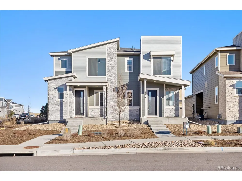 Welcome to this beautiful, corner lot duplex situated across from the community's park and playground with their mountain views! Open the front door to find a spacious living room with high ceilings and an open floor plan that connects the living to the dining and kitchen spaces. A large island with barstool seating, custom granite counter tops, newer appliances, as well as a large pantry and direct access to the patio make every inch of this kitchen useful space, no matter your favorite form of entertaining (or keeping it low-key!). A half-bath just off the main space makes for easy hosting, and the other two bathrooms are situated conveniently upstairs with the three, natural light-filled bedrooms. With thoughtful updates in the bathrooms, laundry upstairs by all the bedrooms, and a large primary suite, this home is move-in ready for its next owners. Come see it for yourself today!