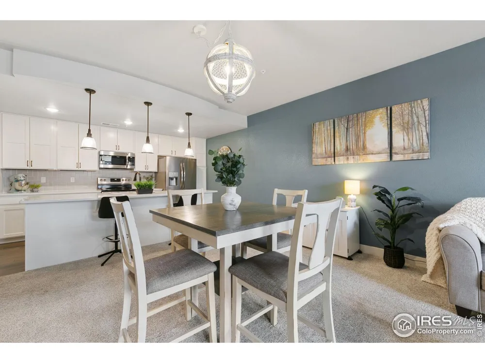 This stunning main-level condo walkable to the Highland Meadows Golf Course offers elevated finishes and incredible amenities! Nestled in the heart of Portofino Flats at La Riva-just steps from the brand-new community center-this 1-bed, 1-bath unit features an oversized kitchen island and designer upgrades. Enter through the secured building entrance or your private, oversized one-car garage conveniently located just across the hall. Inside, natural light floods the space, highlighting the white stone countertops, engineered hardwood floors, and sleek tile finishes. The HOA includes water, sewer, trash service, snow removal, and lawn care. Also included -- the resort-style amenities! Take in breathtaking mountain views while enjoying the outdoor seasonal pool and 10-person hot tub, stay active in the state-of-the-art fitness center, or entertain in the elegant community space. Walk to the golf course clubhouse, the best Italian in town at Pizza Vino or stroll to Mighty River Brewing or hop in your car and arrive at Centerra, Windsor, or Loveland! Access to I-25 is a snap so Denver doesn't feel far away! This is a home you won't want to miss.