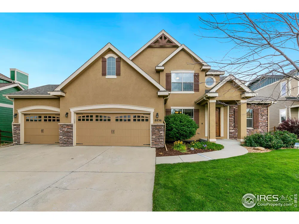 Immaculate upgraded 2-story home in Highpointe. 4 bed, 4 bath, study, finished basement w/theatre room, spacious game room, & custom wet bar. Gorgeous eat-in kitchen w/double sided fireplace, island, gas range, custom wood beams, beautiful extra thick slab granite, butlers pantry w/beverage fridge. Huge primary retreat w/double sided fireplace, sitting area, walk-in closet & 5pc bath. Fabulous back deck w/pergola overlooking lush back yard that backs to open space! New class 4 roof 2020!